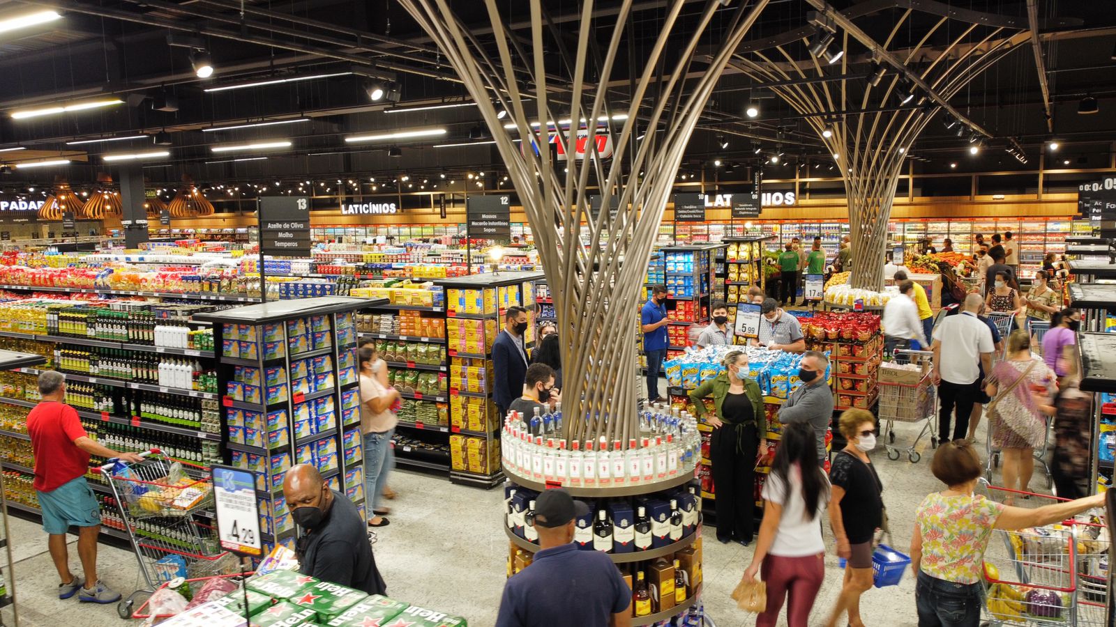 O projeto envolveu planejamento e execução completa de todos os elementos de comunicação no ponto de venda: sinalização de setores, comunicação de ofertas, faixas de gôndola, adesivação de ambientes, totens, painéis e displays personalizados.