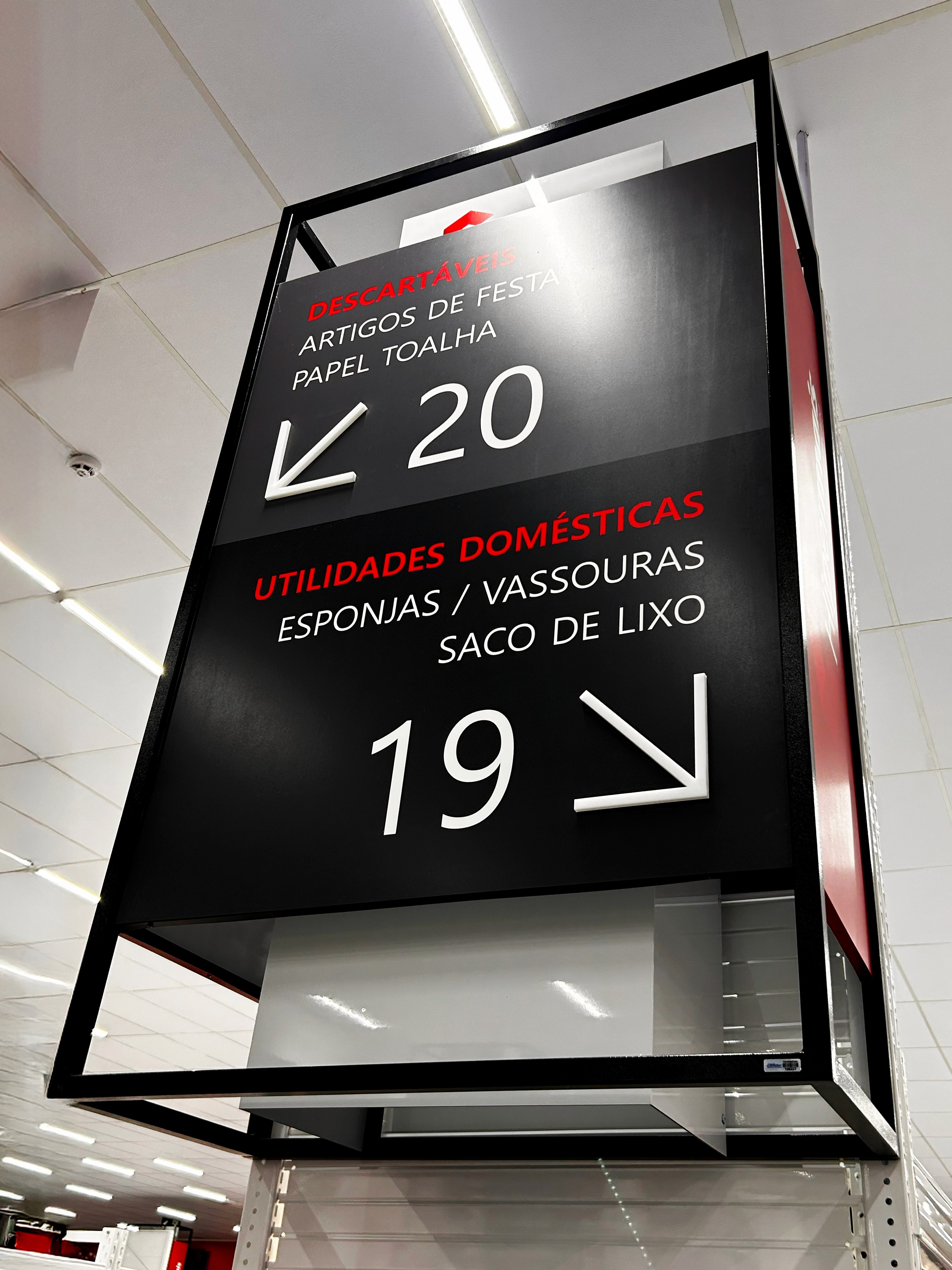 A execução contemplou o desenvolvimento de sinalizações aéreas, direcionais e de categorias, com estrutura metálica e painéis em acabamento industrial, garantindo alta durabilidade e excelente visibilidade para o consumidor. Foram utilizados materiais de impressão UV de alta resolução e chapas de polionda e ACM, aplicados com rigor técnico e alinhamento estético ao padrão da rede.